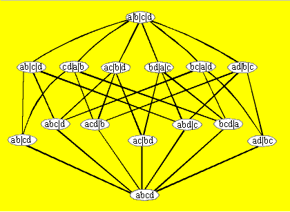 für die Menge M={a,b,c,d} abgebildet, wobei die Schreibweise