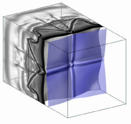 Next: Snapshot 2 Up: Three-dimensional Simulation Previous: Three-dimensional Simulation Snapshot 1, H2:O2:Ar / 2:1:7, T0=298 K, p0=6.67 kPa Table of Contents Home Contact last update: 06/10/03